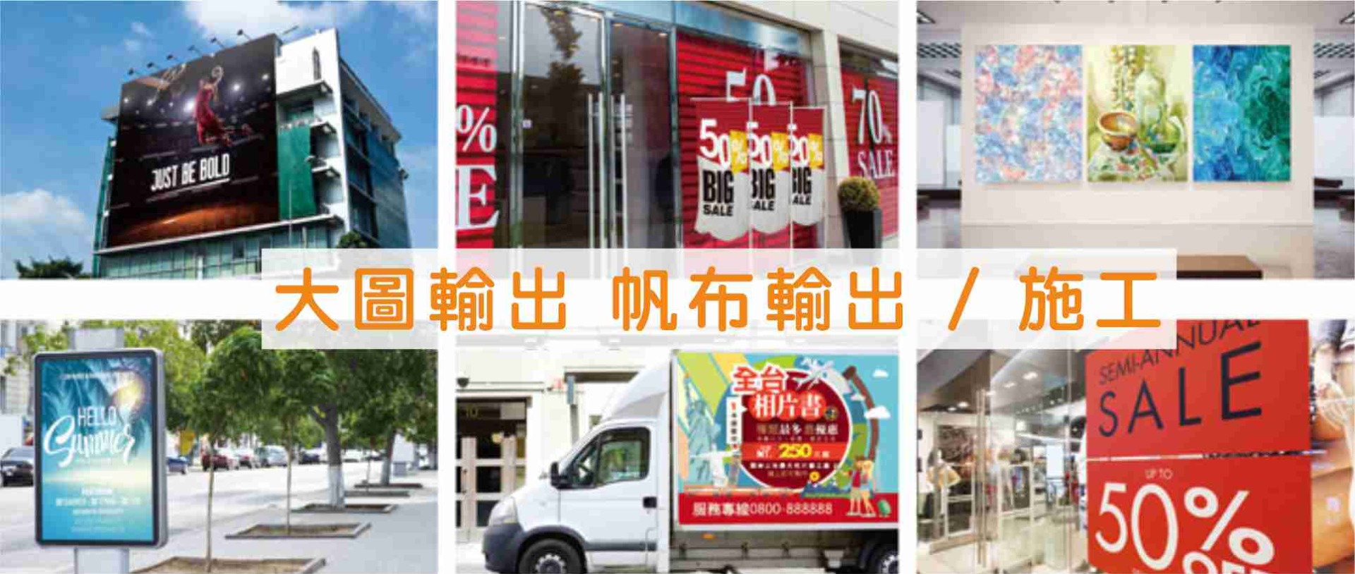 大型輸出中心各種輸出機型齊備,有一般的PVC、PP相紙、高解析帆布、無接縫帆布、UV帆布